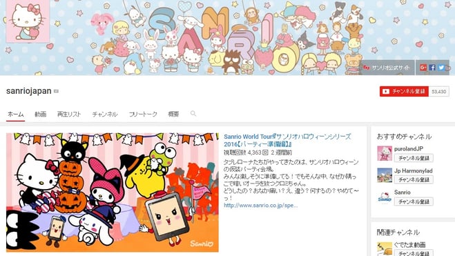 例 サンリオの日本向け公式チャンネル