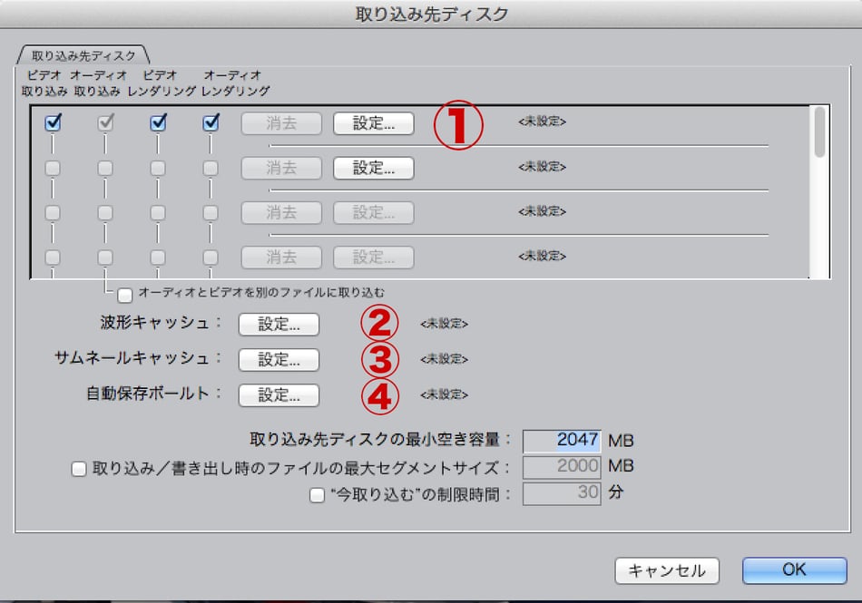 映像の取り込み先、または自動でプロジェクトを保存してくれる