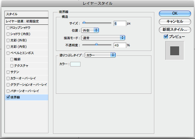 色を今回はフォントの色に近い色に選択して設定を少しいじります。