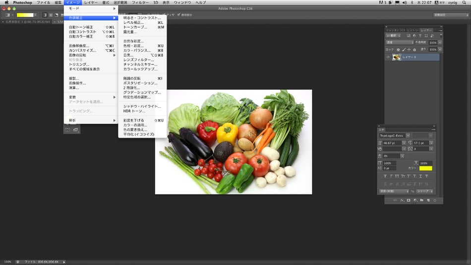 イメージ→色調補正と進んでいきます。そうすると更に選択肢が出てきます。
