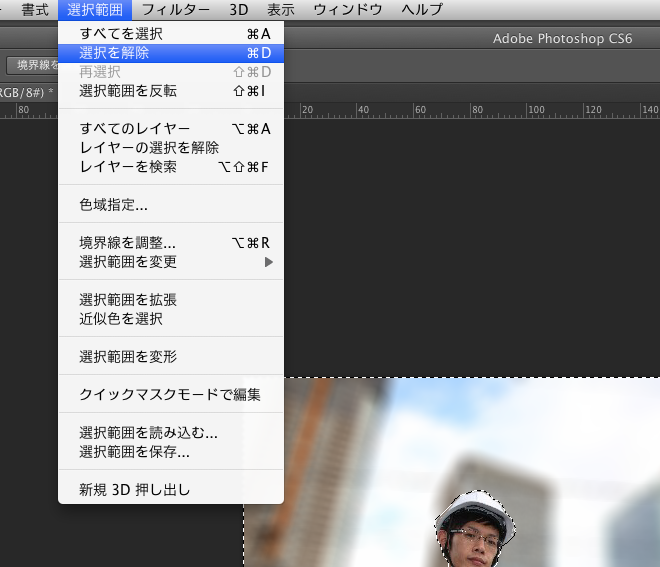 これで背景だけが選択された状態になりました。次から背景をぼかしていきます。