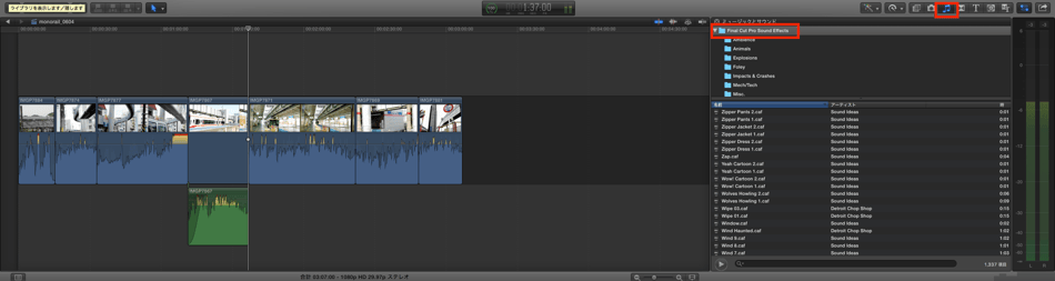 1)ファイナルカット上にある音の流用