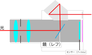 「レフ」とは「反射させる」の意味でレンズから取り込んだ光を反射鏡を使ってファインダーに写す仕組みを表しています。