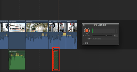 Final Cut Pro Xの場合は録音したらすぐタイムライン上にのせることができ、編集できてとても簡単で作業が楽です。