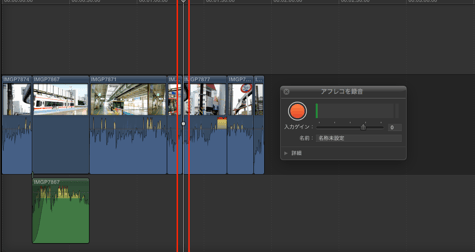 のせたり、仮でナレーションをのせたりすることがありますが、Final Cut Pro Xではそれが簡単にできます。