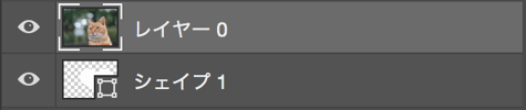 この状態だと、レイヤー(猫の画像)の上にハートのシェイプが