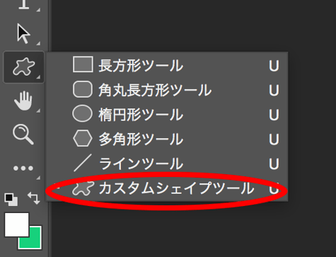 そして「カスタムシェイプツール」を選択します。