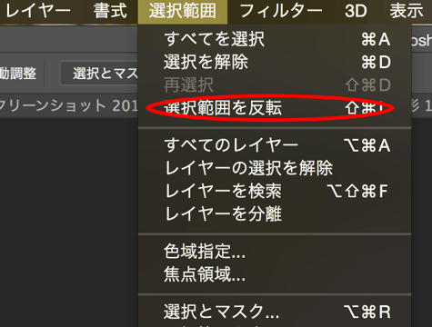 「選択範囲」→「選択範囲を反転」を選んでください。