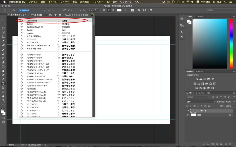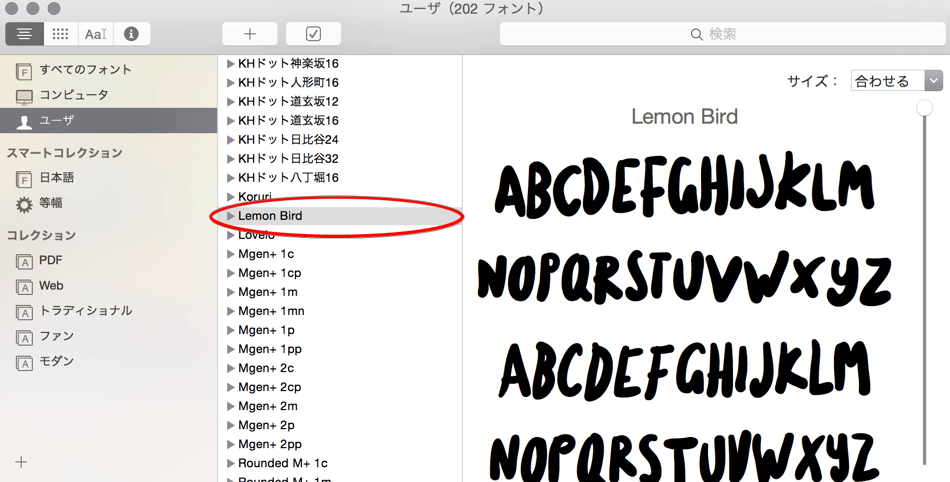 私は、ドラッグして追加しました。赤丸をつけたのが今回追加したフォントです。