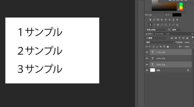 「1サンプル」と「3サンプル」を右に
