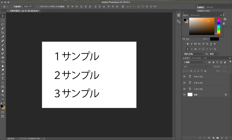 今回はテキストを移動させましたが、同一キャンバス上にある複数の画像をまとめて移動させたい場合は<command>+<shift>で