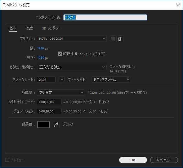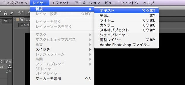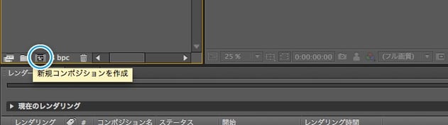 ある「新規コンポジションを作成」ボタンからでも作成できます。
