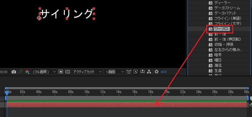 「エフェクト&プリセット」の中から「ワープロ」のプリセットをテキストレイヤーに