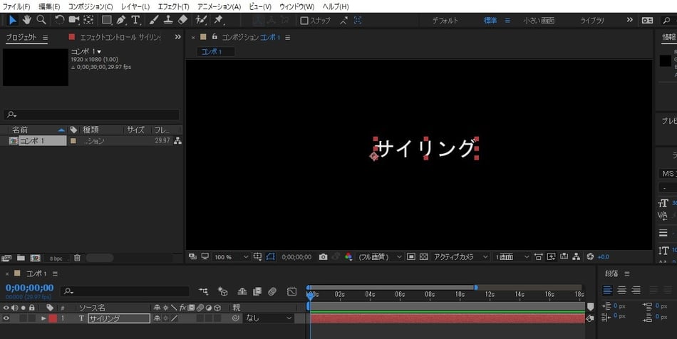 「サイリング」という任意のテキストに「タイピング風効果」を付けてみたいと思います(‘◇’)ゞ