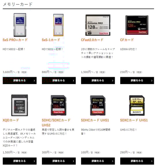 ・SONY PMW-160というテープレスカメラなら1日レンタル8400円(税抜)