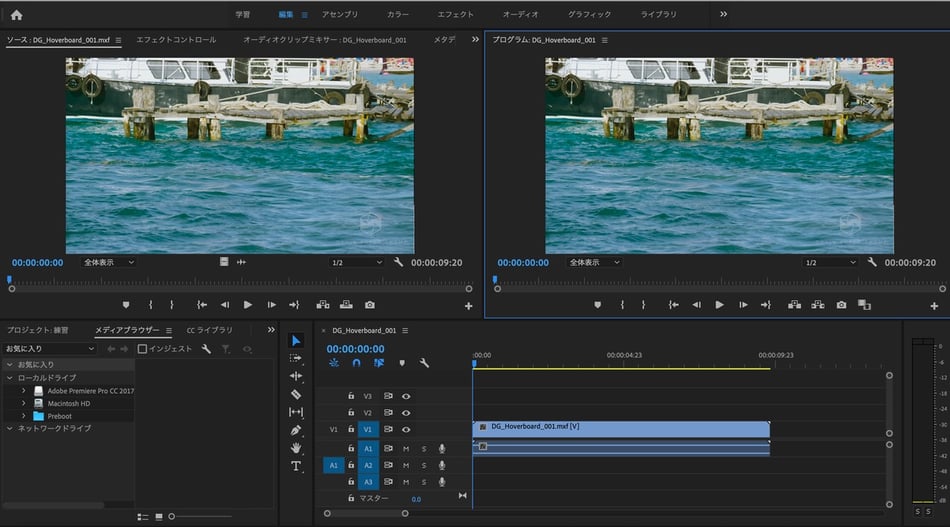 (今回はAdobeの公式サイトにあった練習用の映像素材を読み込んでいます。)