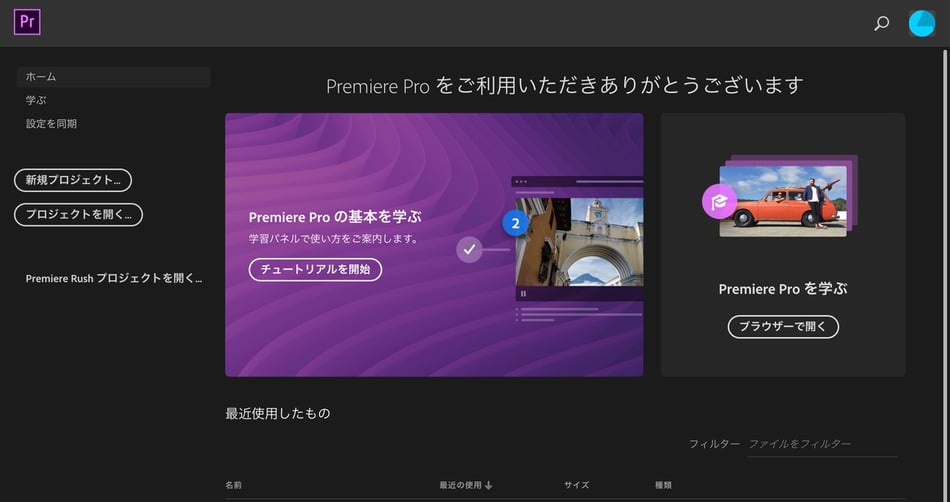Premiereを開くとまずこんな画面が出てきます。