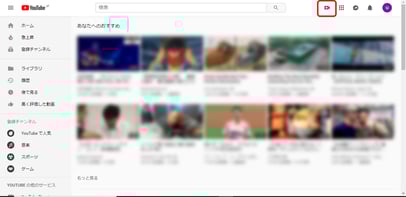 ③ すると「動画をアップロード」と「ライブ配信」という文字が出てきますので、