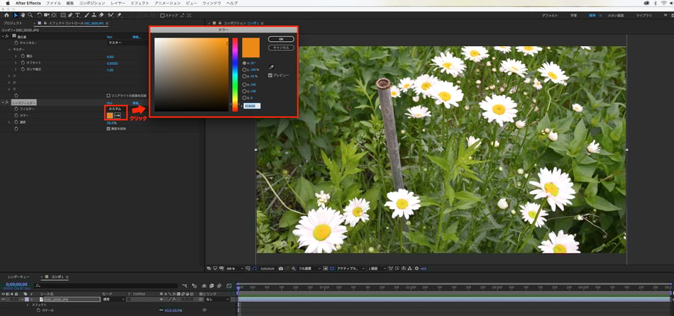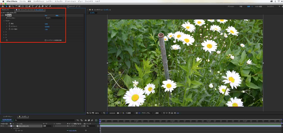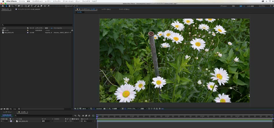[1] 加工したい写真をAfterEffectsに読み込みます。
