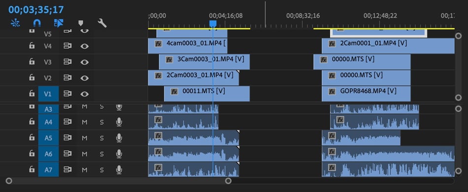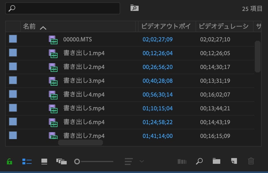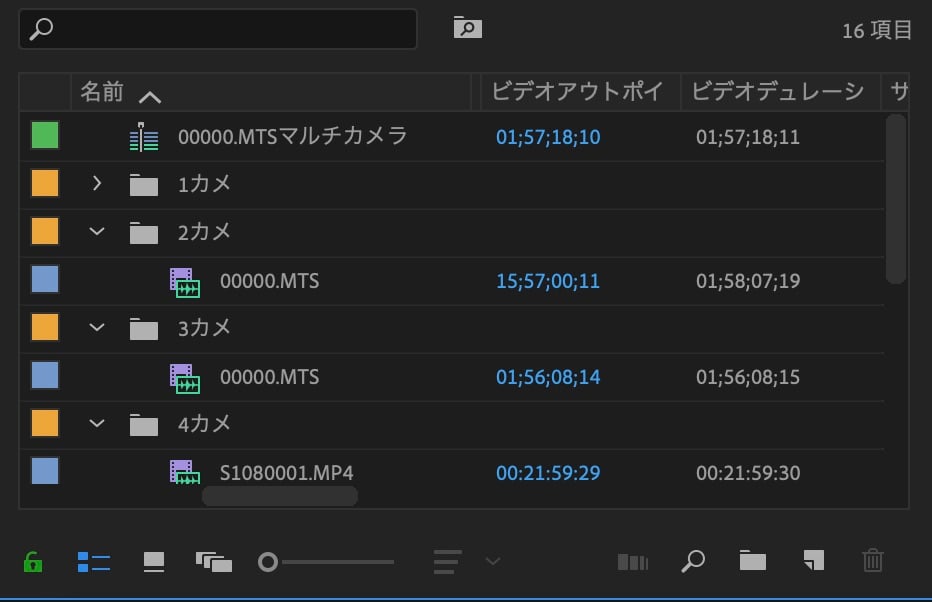 ただし、上の様に複数の素材を使用する場合、素材ををそのままにして作業していると、どのファイルがどのカメラで
