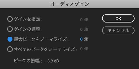 ある瞬間の大きな音がある時などにノーマライズすることで、音量の調整をしやすくします。