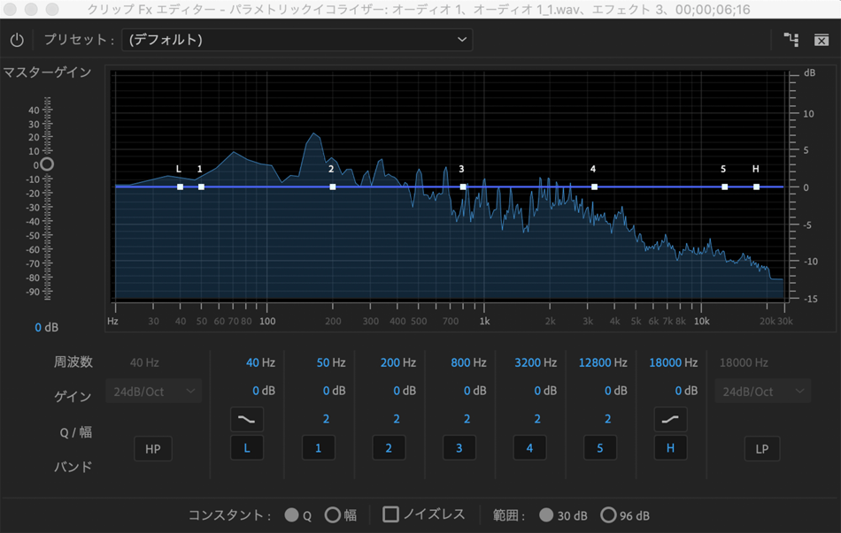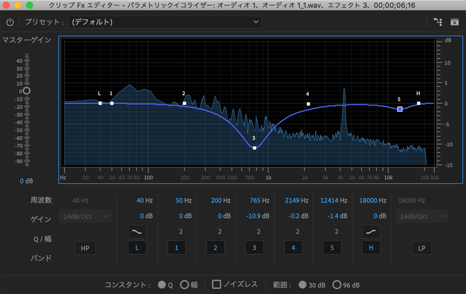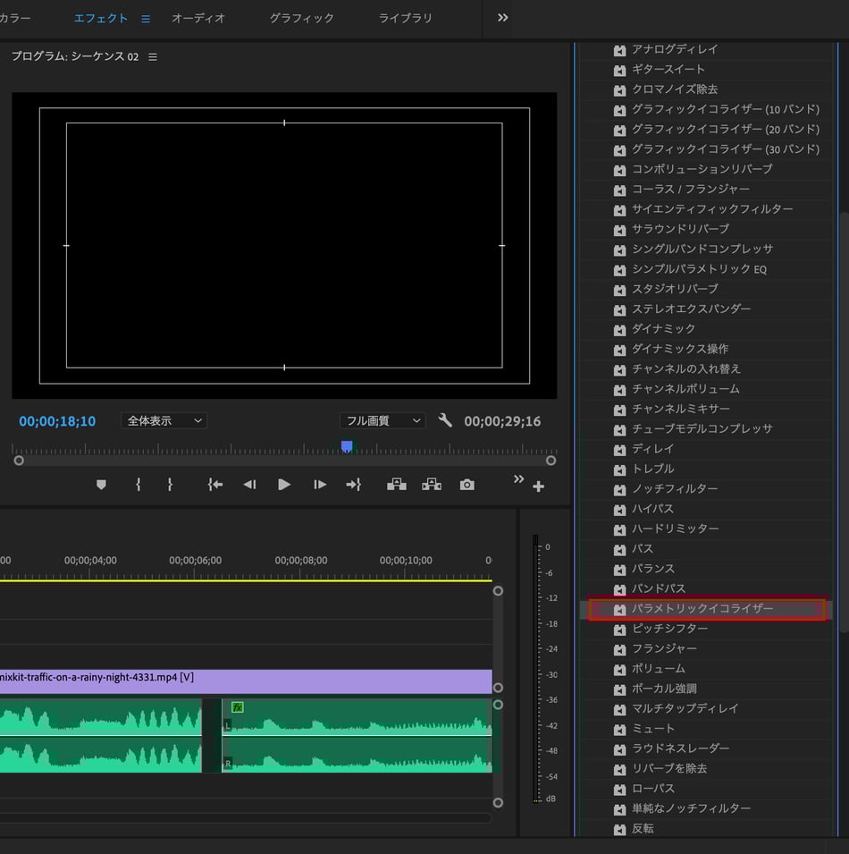 次は、パラメトリックイコライザーで音声を調整する方法です。
