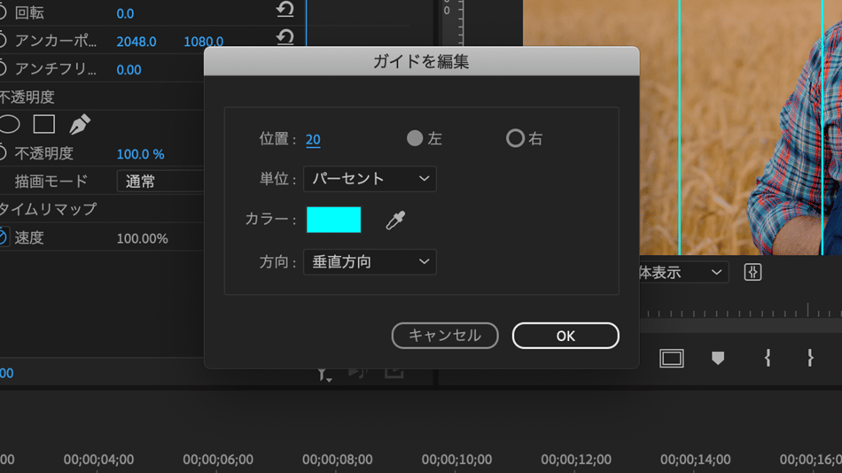 ついでにこの時、「プログラムモニターをスナップイン」にチェックを入れておくと、ガイドにぴたっと