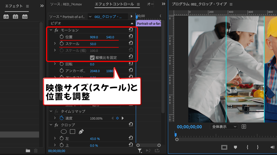 クロップエフェクトだけでサマになるので、人物紹介やオープニング・エンディング映像などにもおすすめです