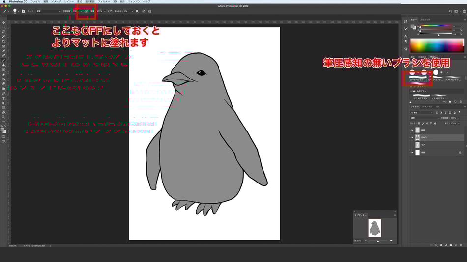 (筆圧感知のついているブラシの場合、塗りムラができやすくなります)