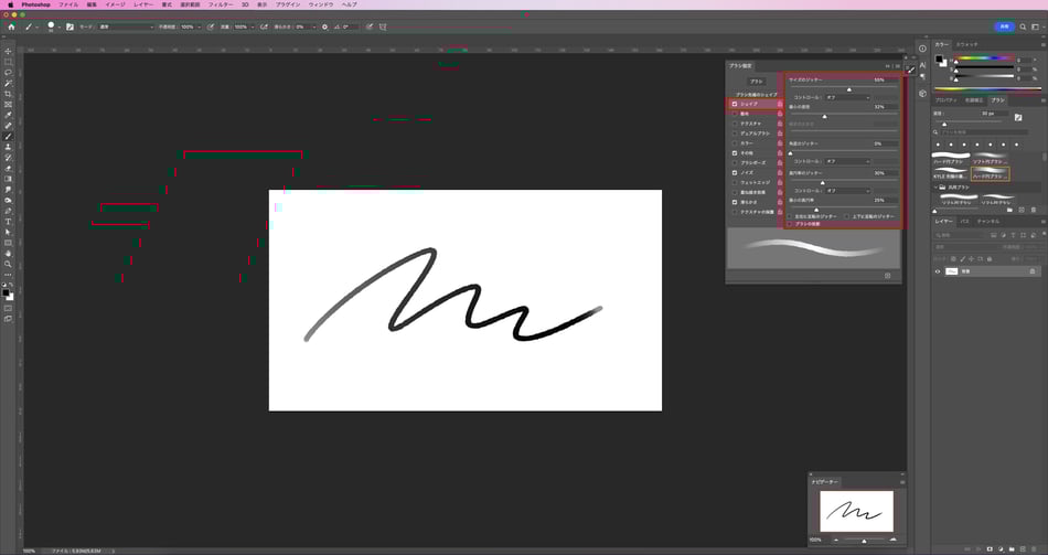 ④ブラシ設定 右下の【+】をクリックすると、今作成したブラシに名前をつけて保存することができます。