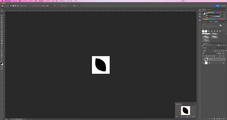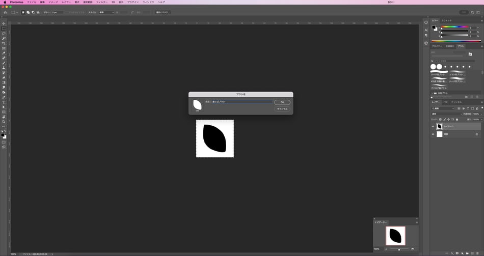 ②①で描画した葉っぱを、選択ツールで選択し、【編集>ブラシ】を定義 をクリックします。