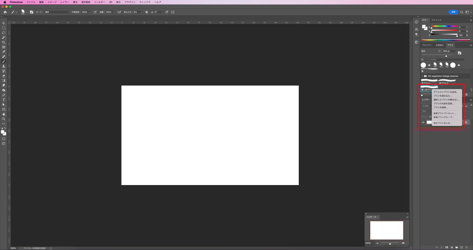作成したブラシの上で右クリックすると、ブラシの削除や、ブラシ名の変更なども行うことが可能です。