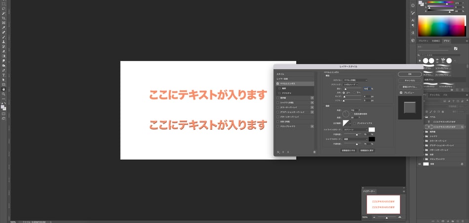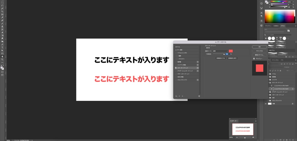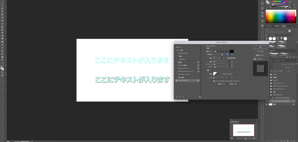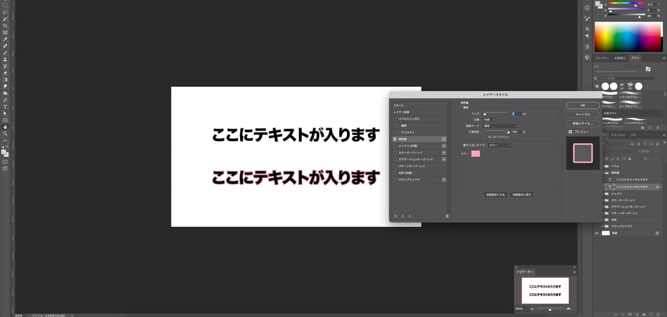 作成した文字のレイヤーをダブルクリックすると、【レイヤースタイル】が出てきます。